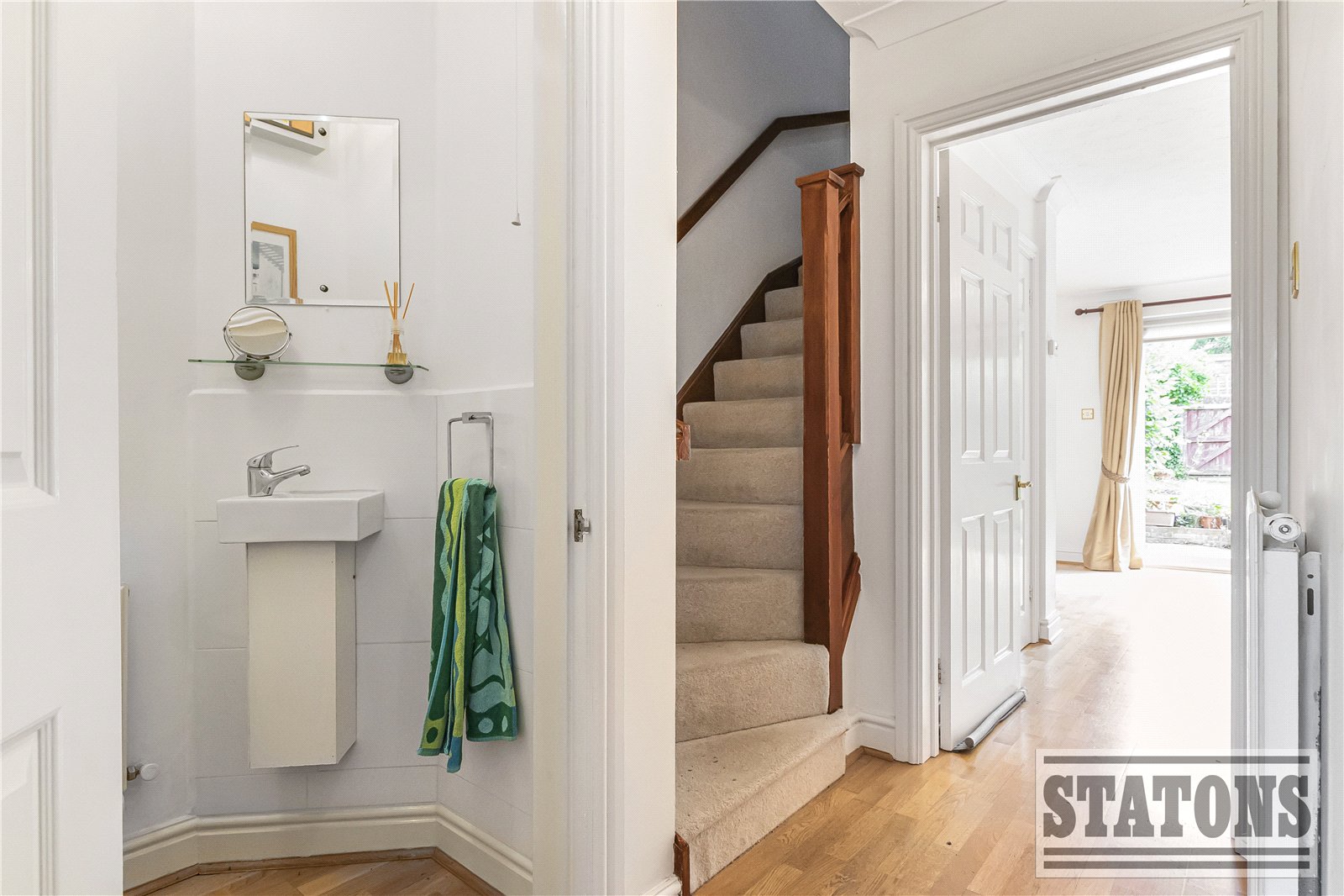 Upon entering, a welcoming hallway leads to a convenient downstairs W/C. To the right, there is a well-equipped kitchen.