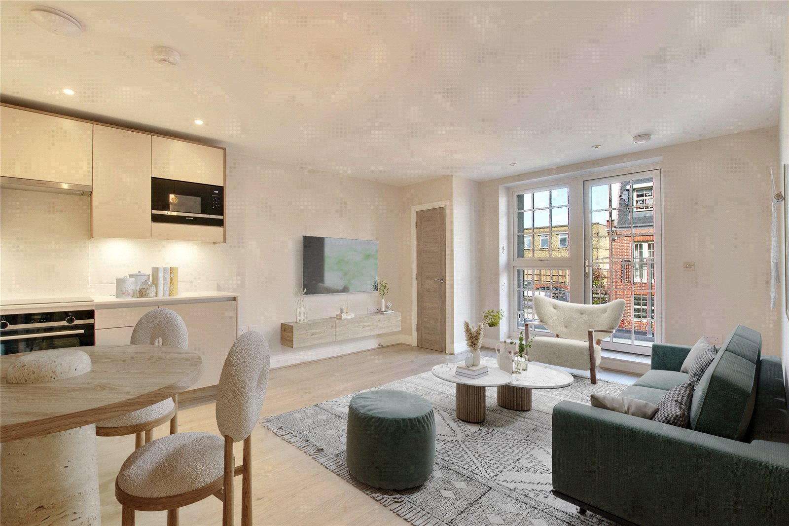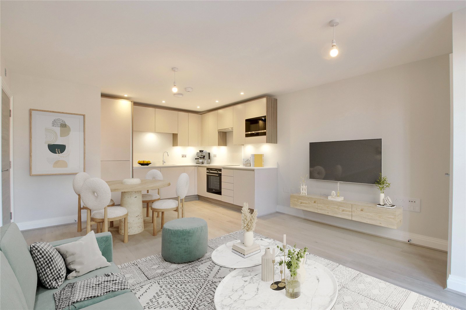 - Open plan living/kitchen and dining area with intgrated appliances