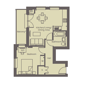 - 555 sqft one bedroom ground floor apartment with generous terrace