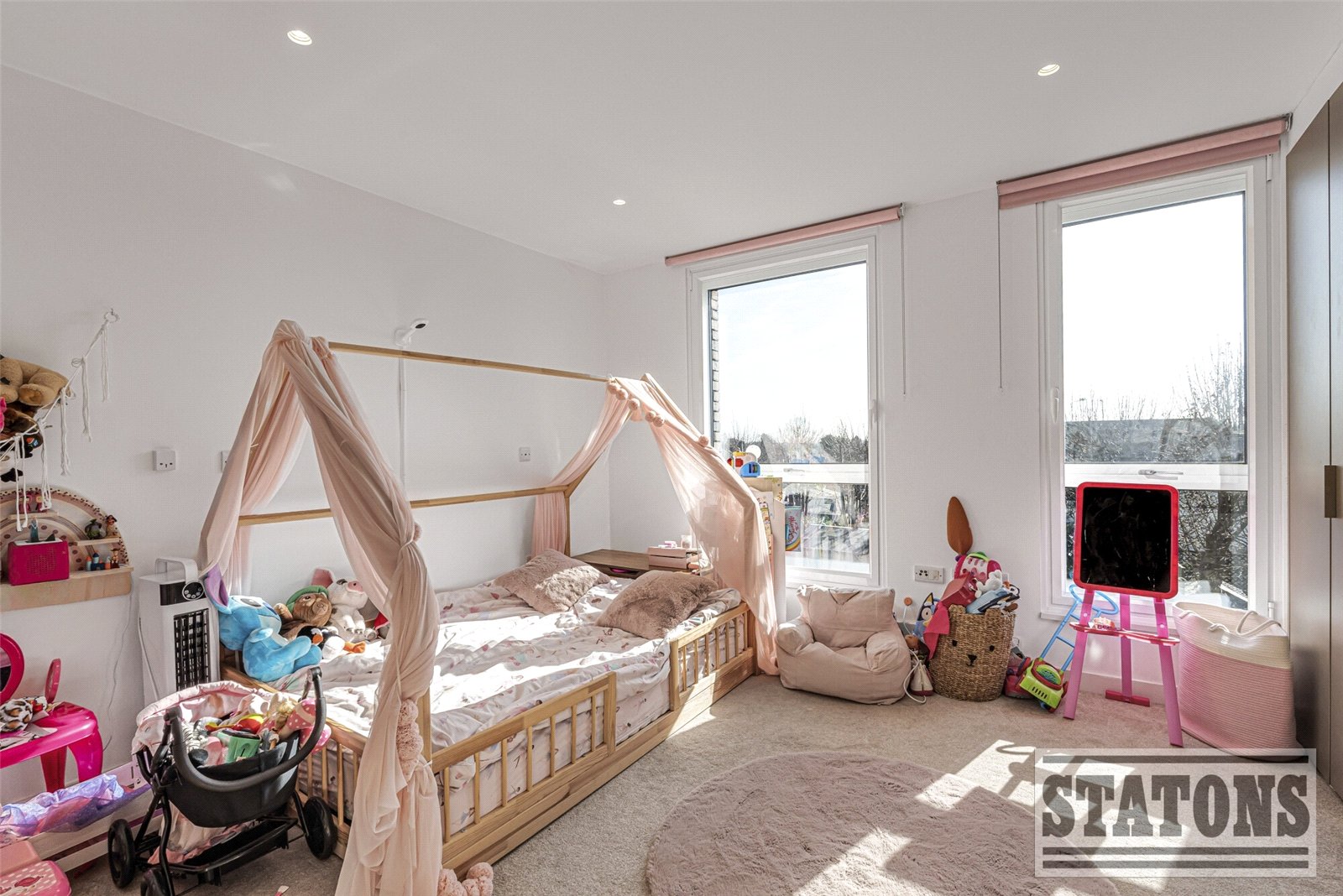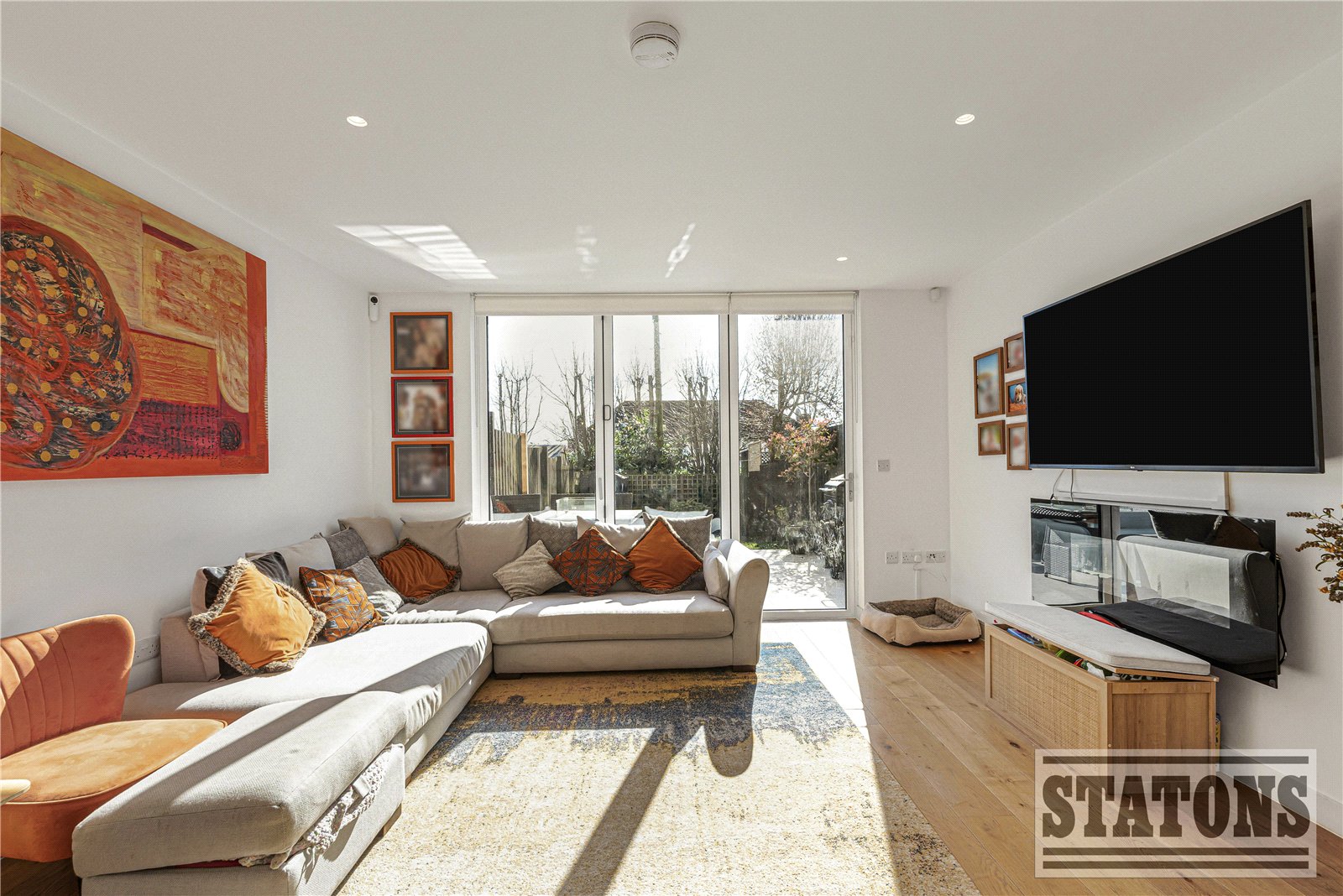 The second floor offers a further two double bedrooms, including an impressive principal suite with en-suite facilities. The current owners have enhanced the property with roof access via a skylight and replaced the previous flat roof with a durable, long-lasting fibreglass roof. The home also benefits from quadruple glazing and comprehensive soundproofing throughout, ensuring excellent energy efficiency and peace and quiet.
