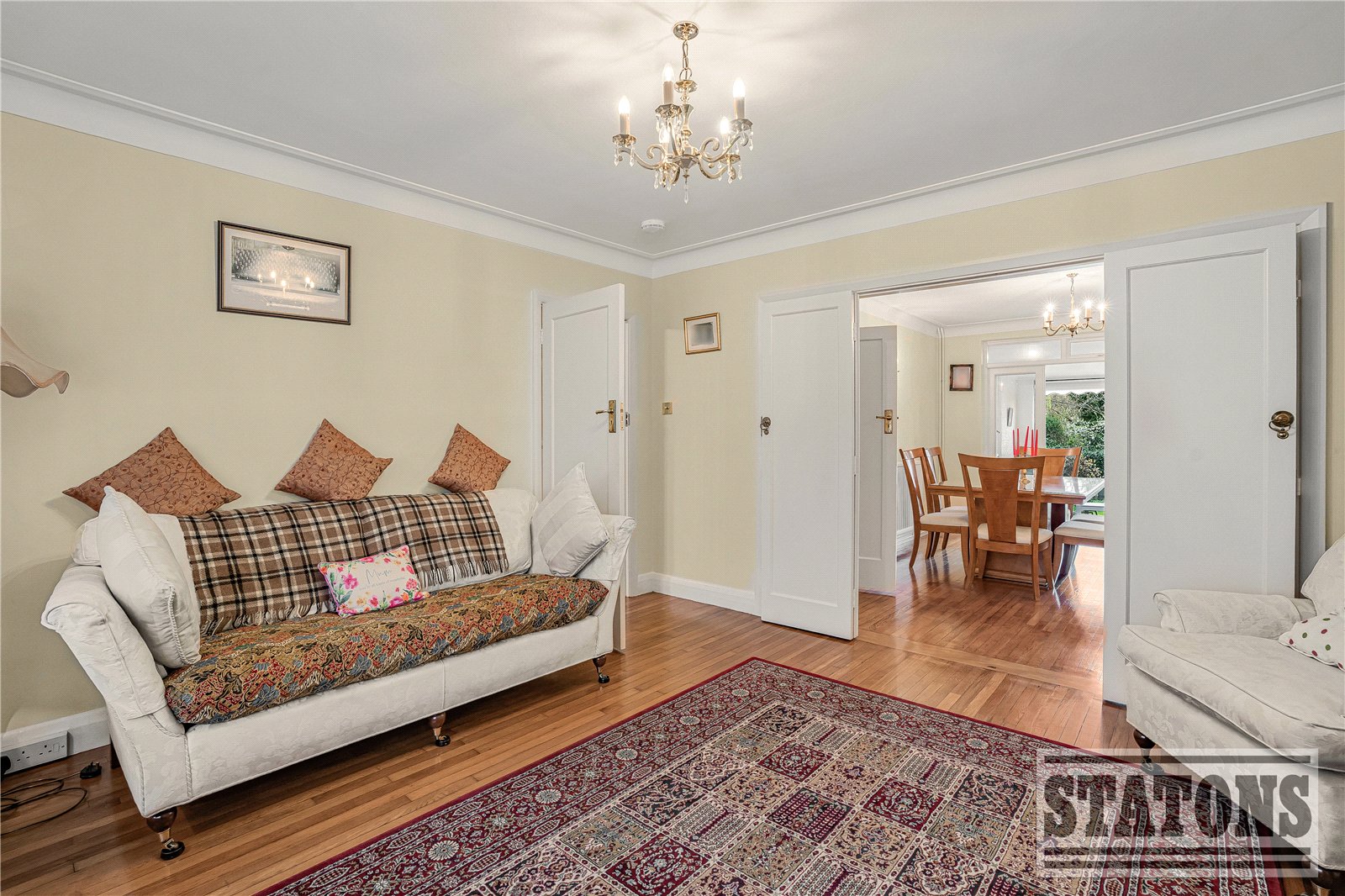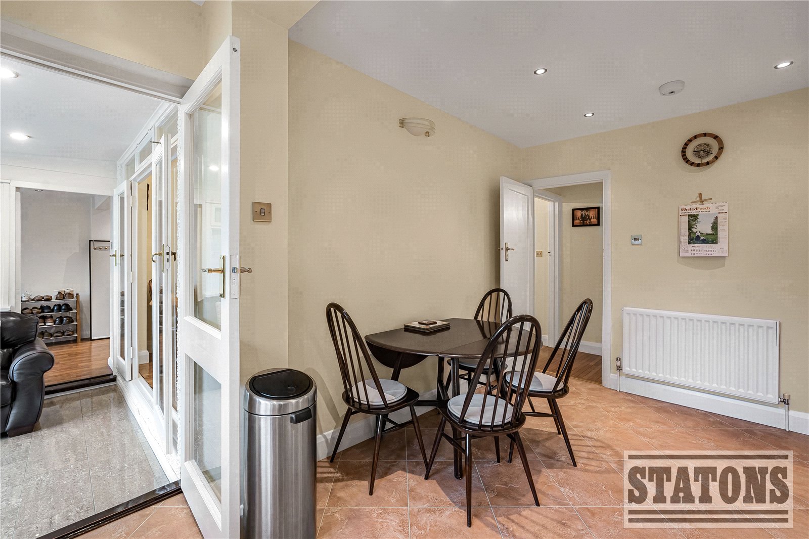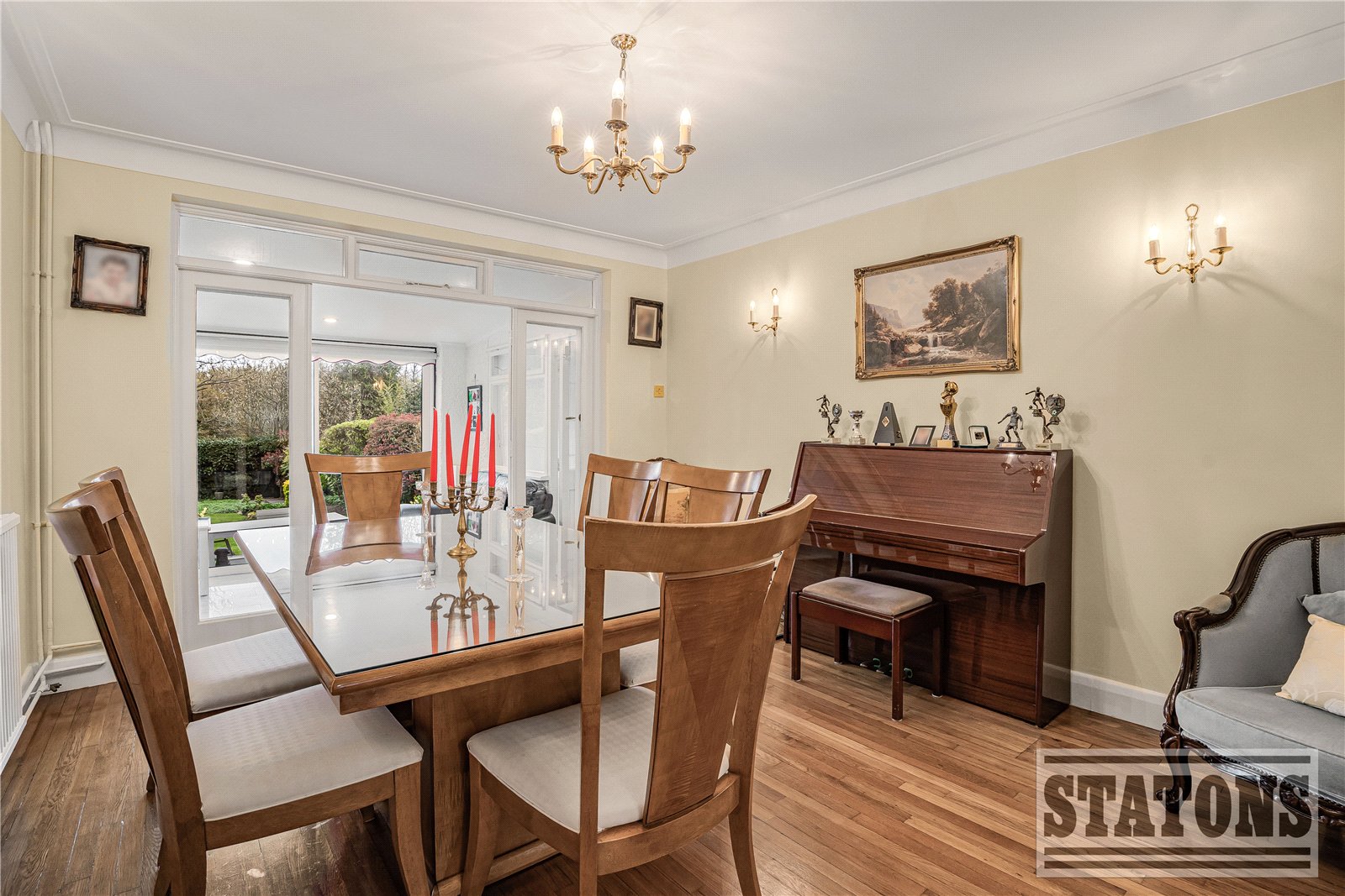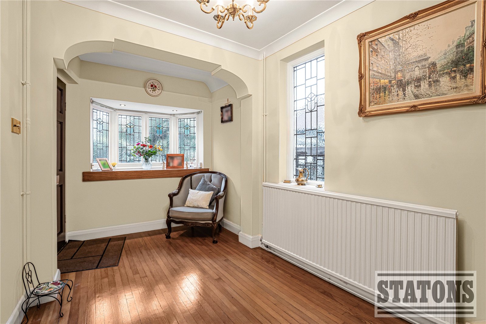 The property welcomes you with a charming reception hallway, beautifully enhanced by leaded and stained glass windows to the front and side, creating an immediate sense of warmth and character. From here, you are led to a guest cloakroom and a generously proportioned sitting room at the front, featuring folding doors that open seamlessly into the dining room—perfect for both everyday living and entertaining. The dining area flows effortlessly into a bright third reception room, while the well-appointed kitchen/breakfast room provides a practical and sociable space for family life.