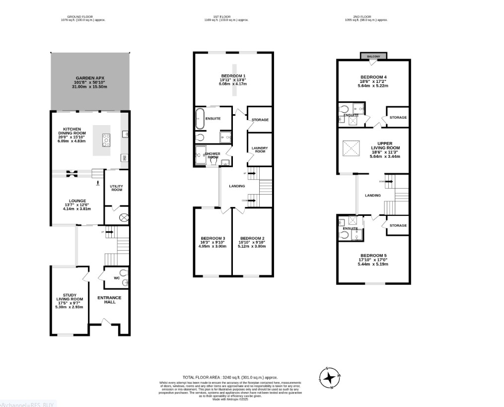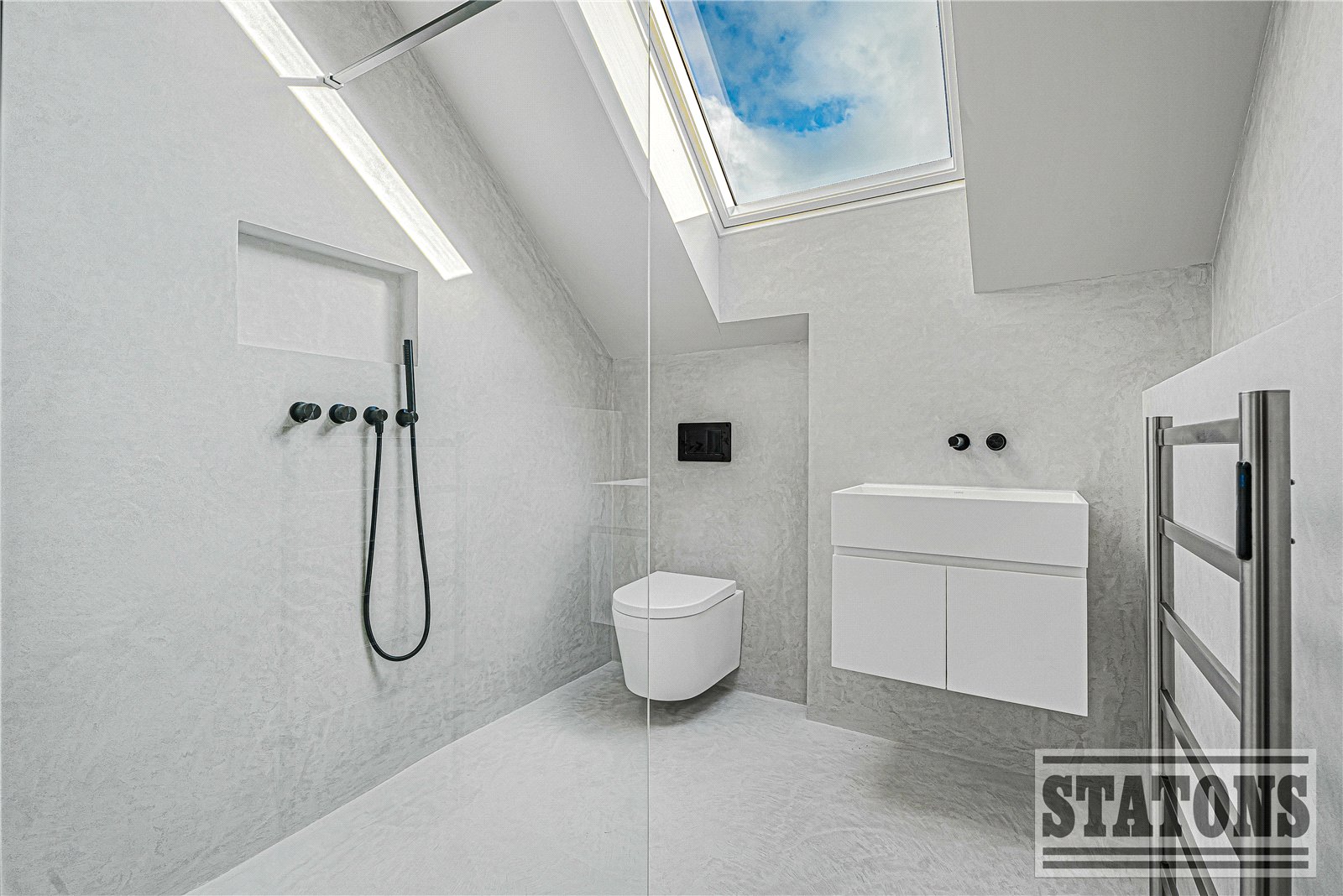 The second floor provides two further bedrooms, each benefiting from en-suite facilities and walk-in storage, alongside a bright and versatile upper living space, ideal as a TV room, home office or additional reception area.