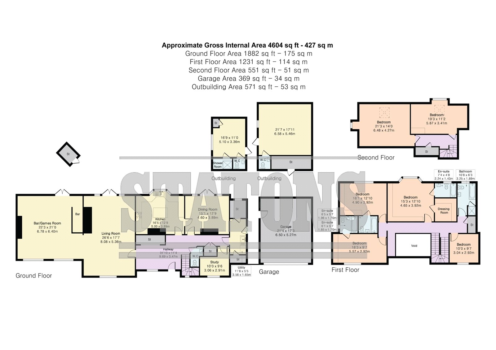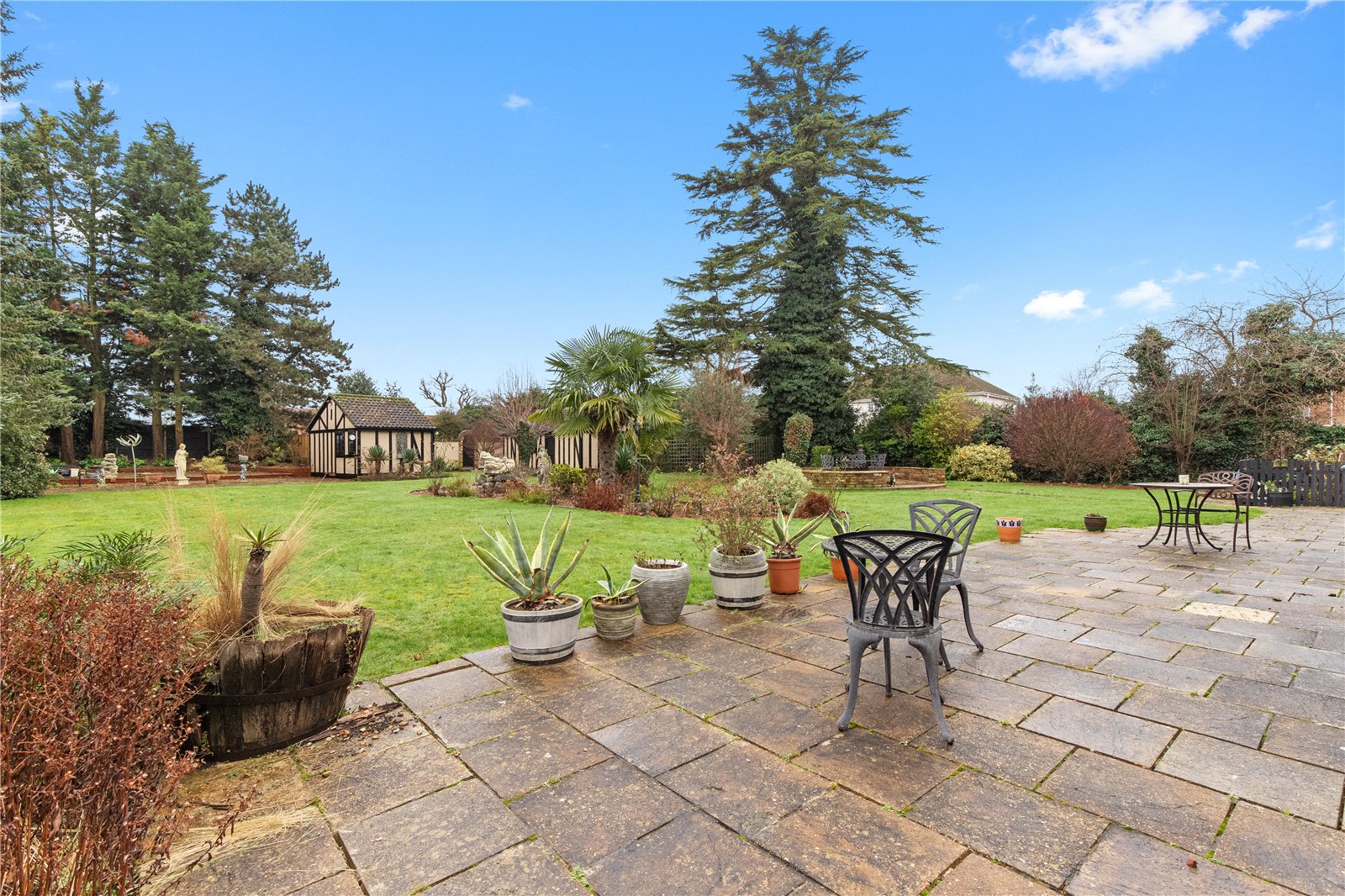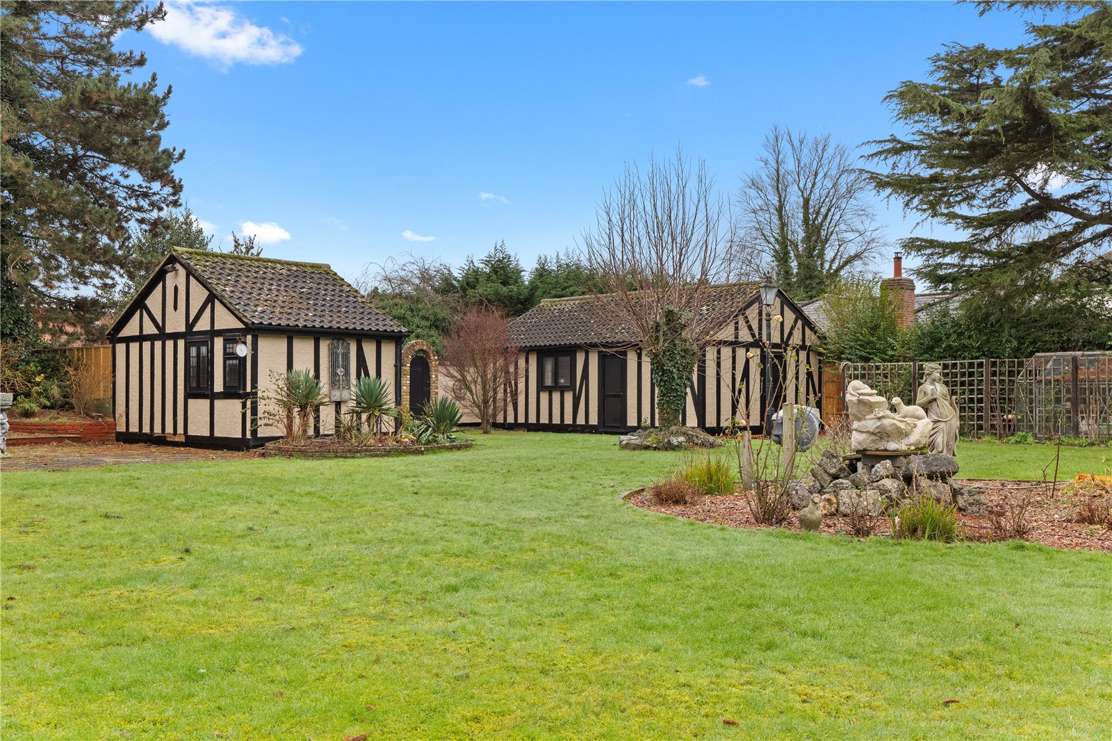At the heart of this property is its extraordinary plot. The expansive grounds include a large south-facing rear garden, immaculately landscaped with a stunning array of mature shrubs, vibrant perennials, and classic scented English roses. Thoughtfully positioned seating areas create ideal spaces for relaxation or entertaining, all within a serene ambience and private setting. Additional features include a double garage, ample off-street parking, and two sizable outbuildings—one currently serving as a games room with w.c and the other was previously a gym area with shower room and w.c.