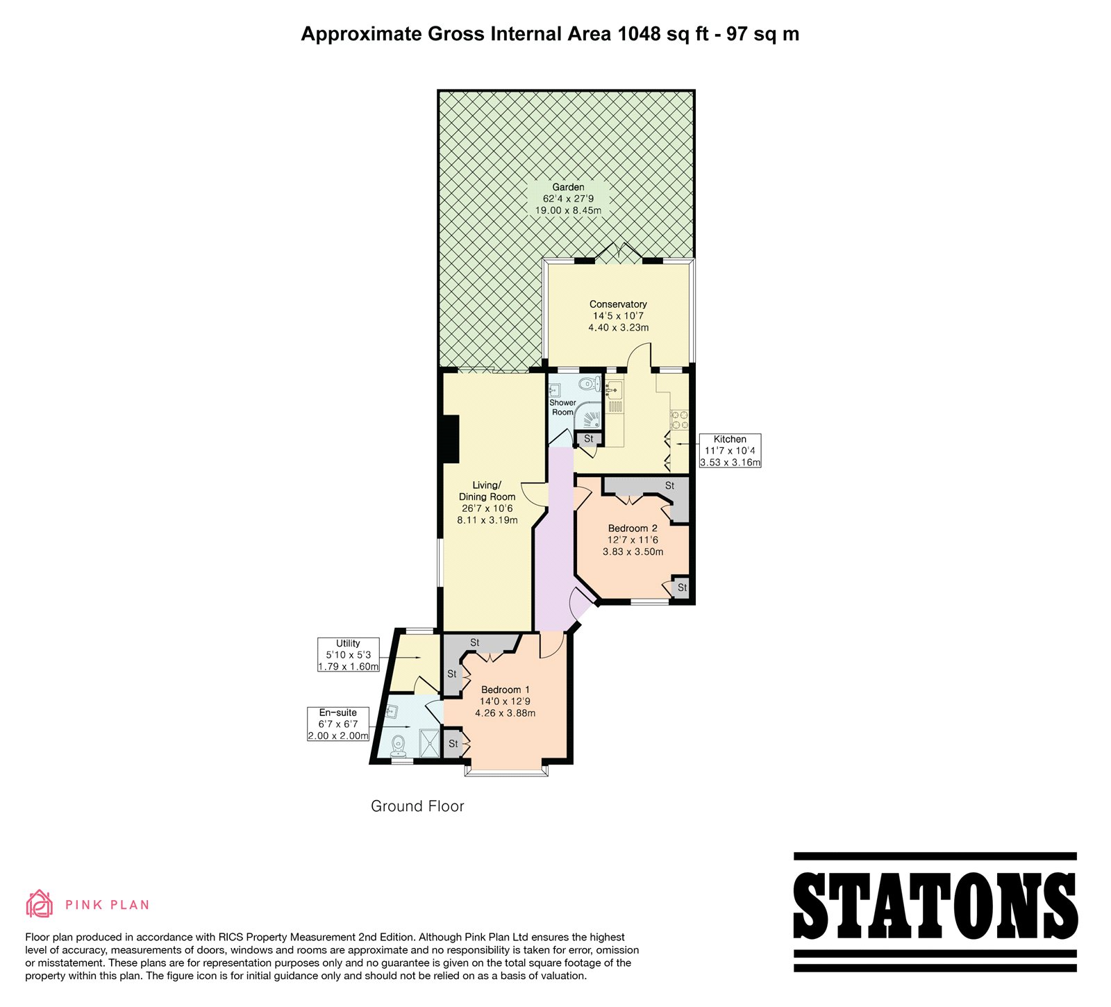 The accommodation comprises welcoming reception hallway, spacious lounge/diner, kitchen, utility, large conservatory two bedrooms with en-suite to principal and a family shower room.