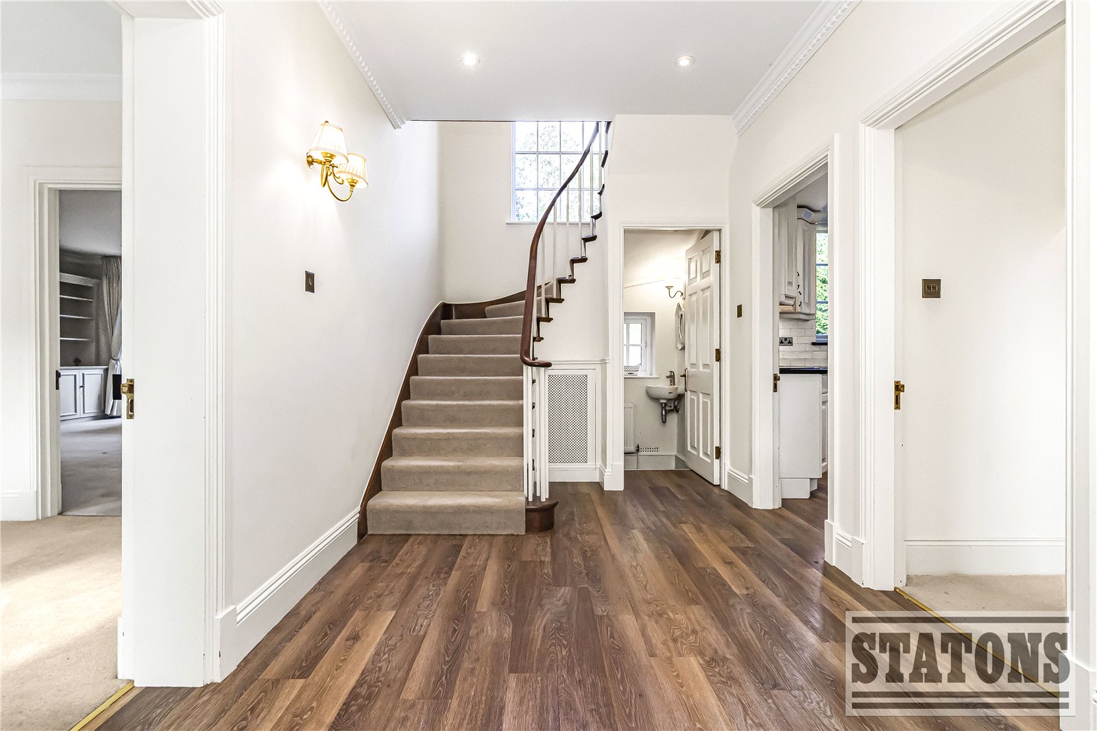 The property is approached via a front garden leading into a spacious entrance hall. From here, there is access to a formal dining room positioned at the front of the house and a generous living room overlooking the rear garden.