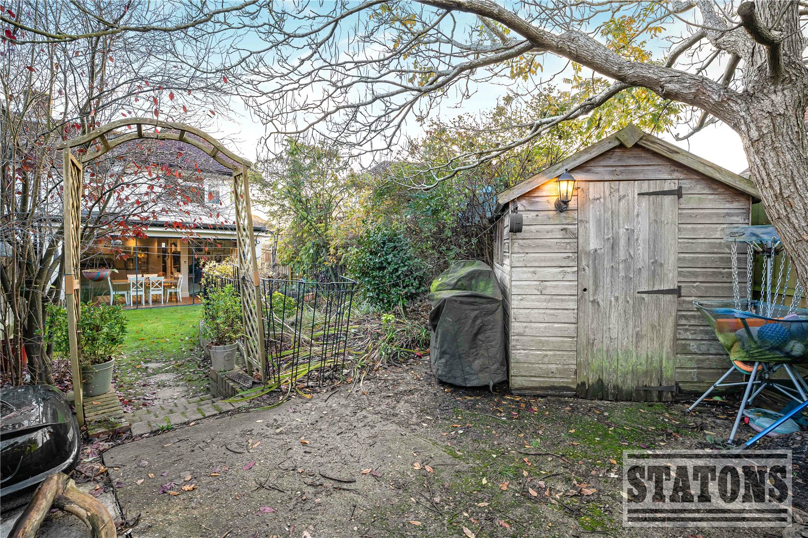 The rear garden benefits from side access and is mainly laid to lawn with a hardstanding area to the rear housing a garden shed. The frontage is laid mainly to paving and provides off street parking.