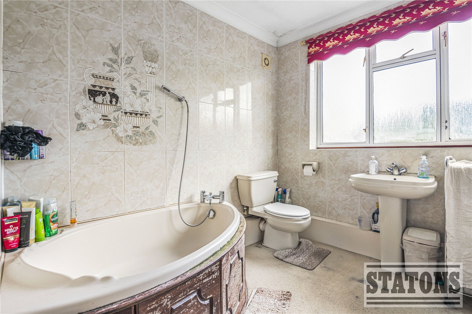 On the first floor, there are three double bedrooms and a fourth generously sized room, all with built-in wardrobe space, along with a large family bathroom.