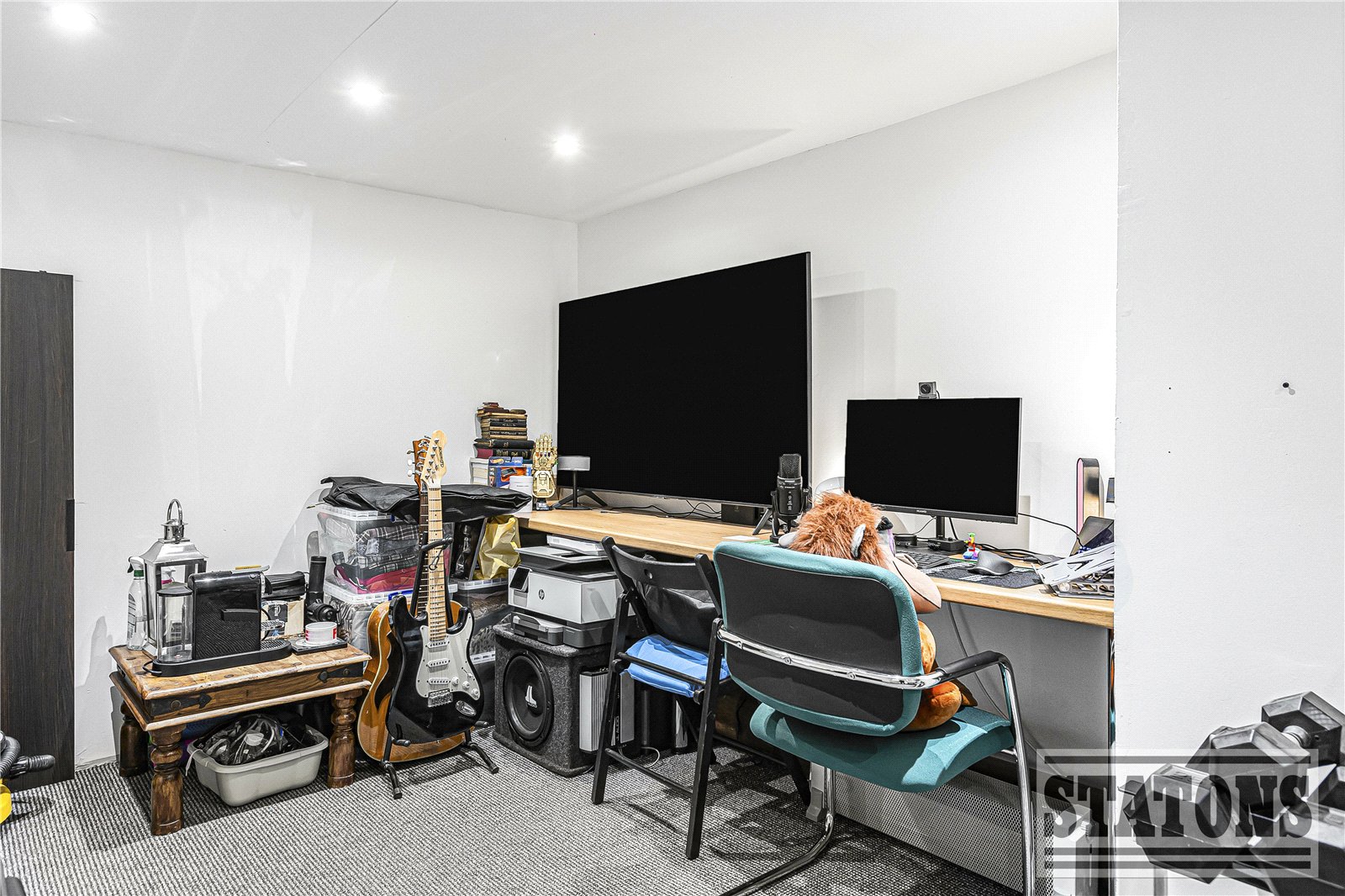 Outside, the property boasts a large rear garden, perfect for outdoor relaxation and summer dining. The garage/outbuilding offers fantastic versatility — currently arranged as an office space with additional storage, ideal for home working or hobbies.