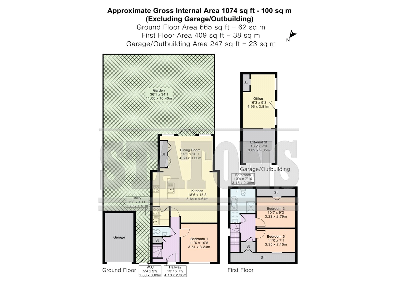 With approximately 1,074 sq ft of internal space (excluding outbuildings) and an additional 247 sq ft garage/office area, this home provides generous and flexible accommodation throughout.