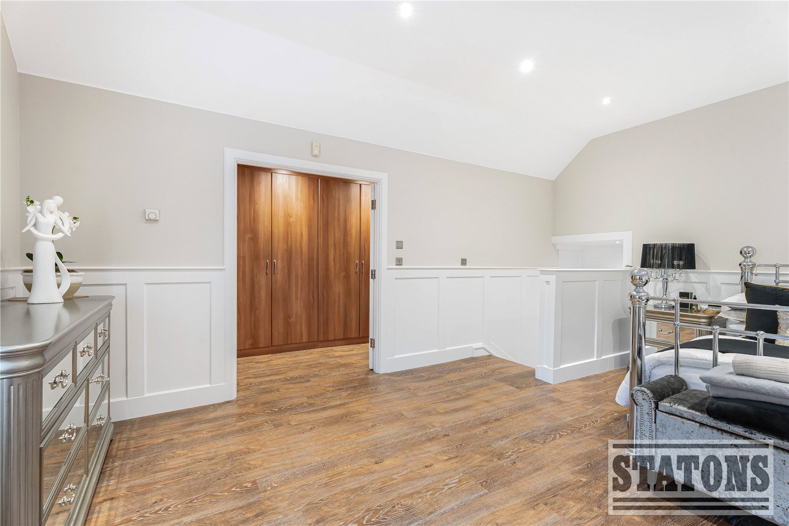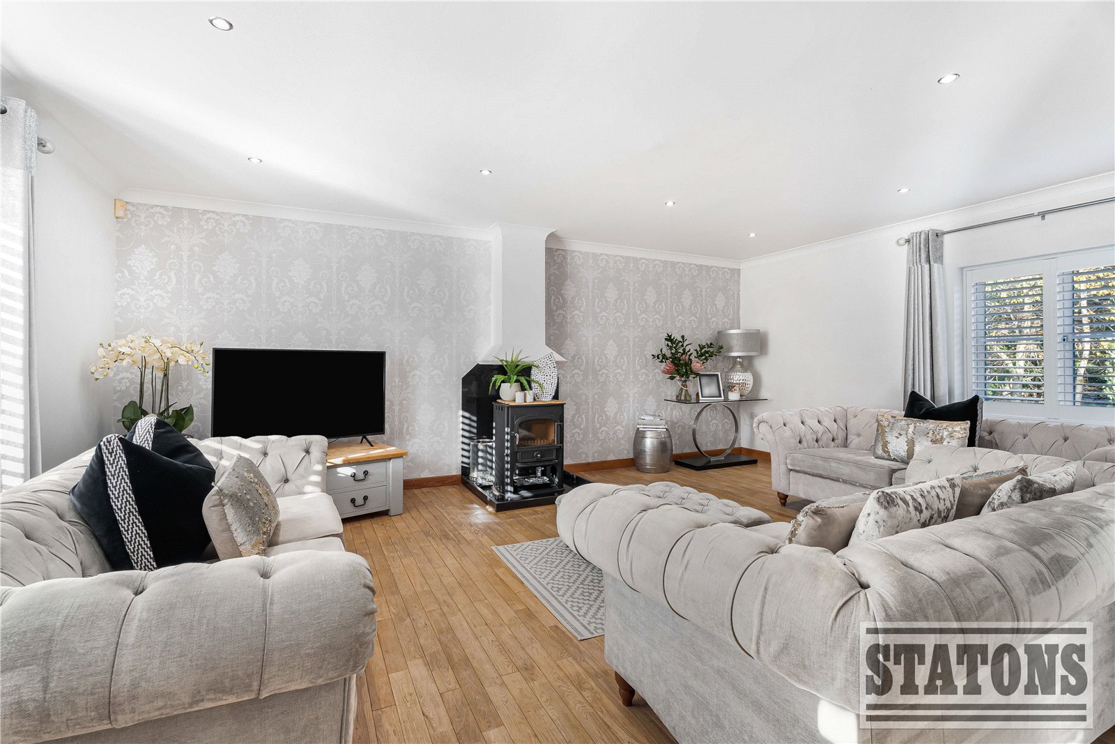 Adjacent to the kitchen is a refurbished utility room with matching units and appliances, while a large TV room — finished with brand new Karndean flooring and further French doors — offers the perfect space for family life or entertaining.