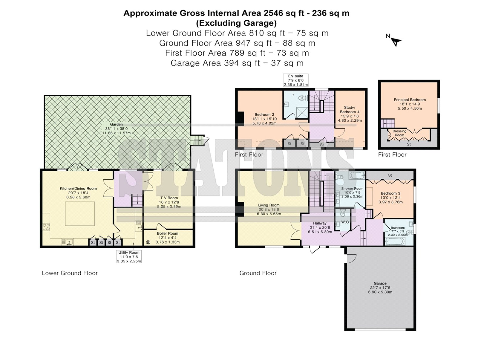 Step into a generous entrance hallway that leads to an expansive dual-aspect living room (20ft x 18ft), luxuriously appointed with a feature log-burning stove — perfect for cosy evenings. An internal corridor reveals the stunning principal suite (20ft x 17ft), complete with a custom walk-in wardrobe and a beautifully tiled en-suite shower room featuring his-and-hers basins.
