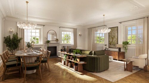 This beautifully crafted three-bedroom apartment offers a rare blend of historic grandeur and modern living. Situated on the second floor of a Grade II listed mansion, the home combines timeless architectural features with contemporary interior design.