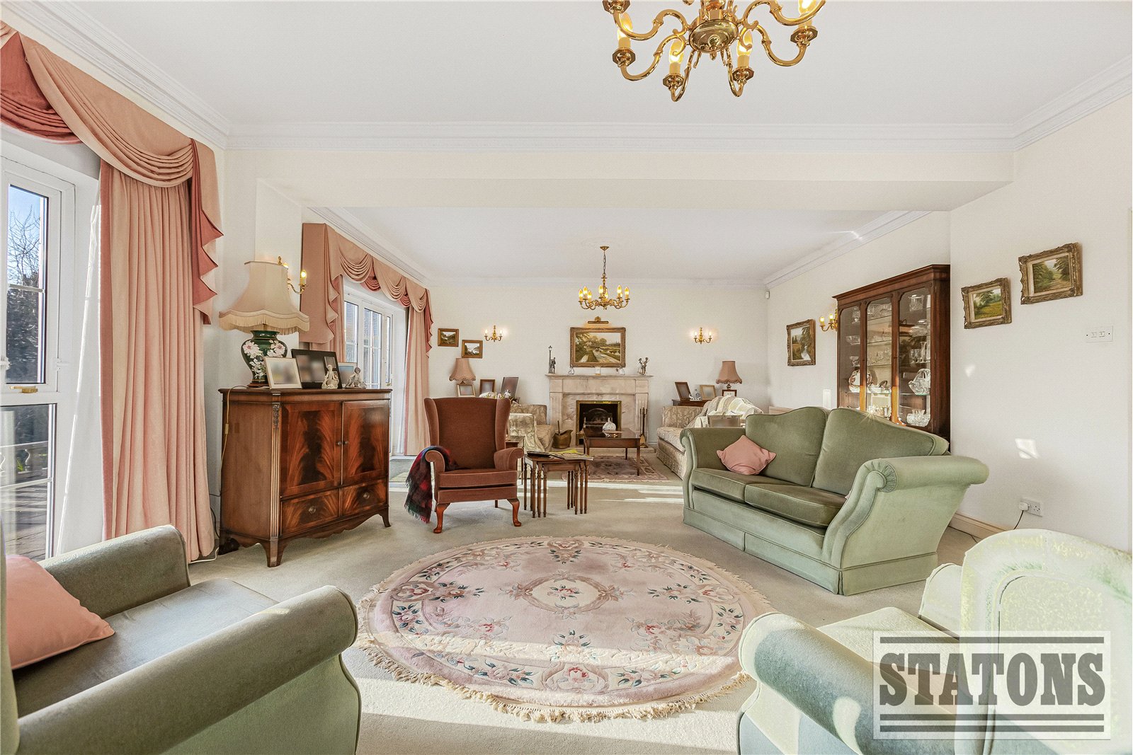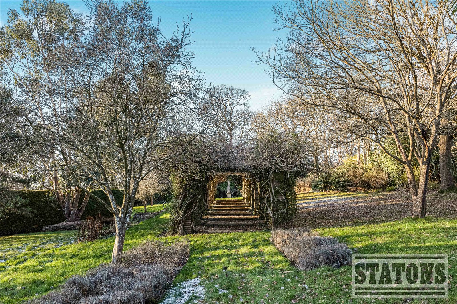 The home is further enhanced by an integral double garage and a substantial detached two car garage with workshop, providing exceptional practicality alongside its architectural charm. The grounds are nothing short of breathtaking. Mature gardens unfold in a series of enchanting outdoor rooms, featuring a tranquil mini lake, a charming pergola, and a sunken walled garden that invites quiet reflection. An outstanding water feature with cascading waterfall forms a captivating focal point, while expansive lawns and mature planting create a sense of complete privacy and serenity. Offering superb potential for extension, subject to the necessary consents and loft conversion, this is a rare and compelling opportunity to acquire a truly distinguished home in an exceptional setting.