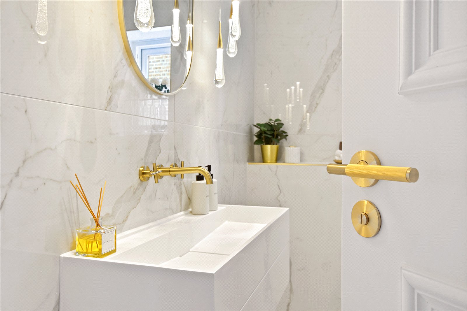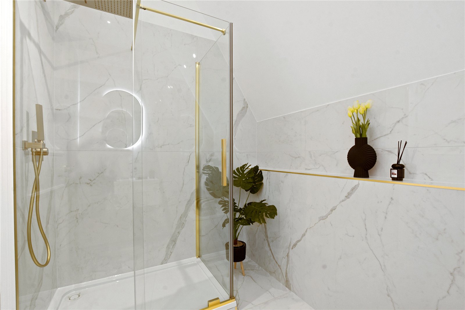Luxurious fully tiled bathrooms and en-suites with solid stone sanitaryware and bespoke brassware