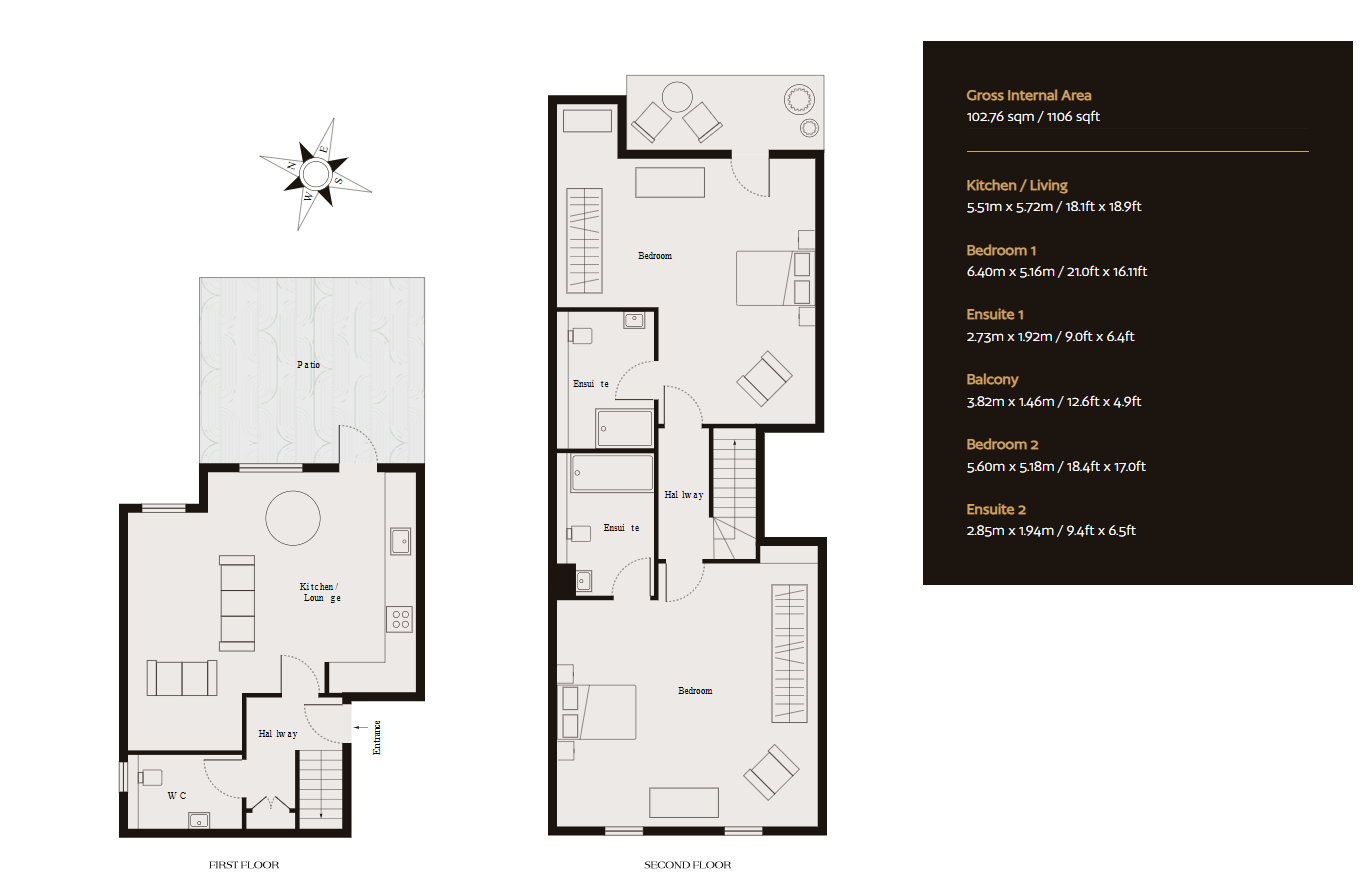 Plot 6 is a beautiful 1106 sq.ft two double bedroom duplex apartment set within this exclusive new gated development with its own private terrace and balcony and allocated parking