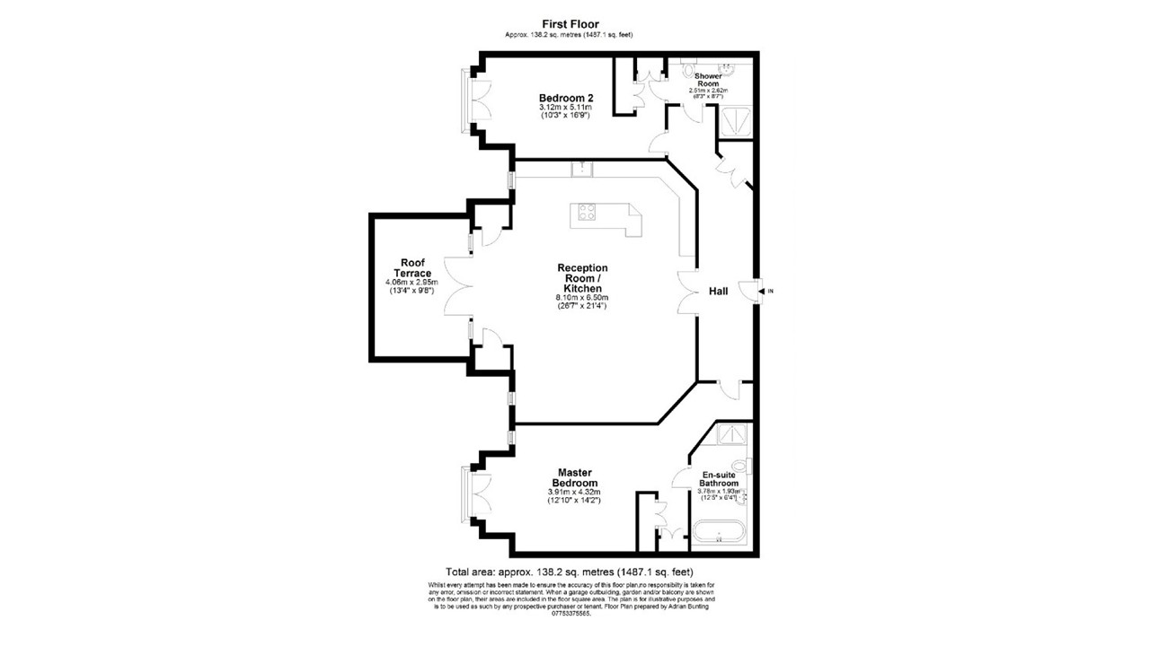 A Luxurious First Floor Apartment with Private Roof Terrace