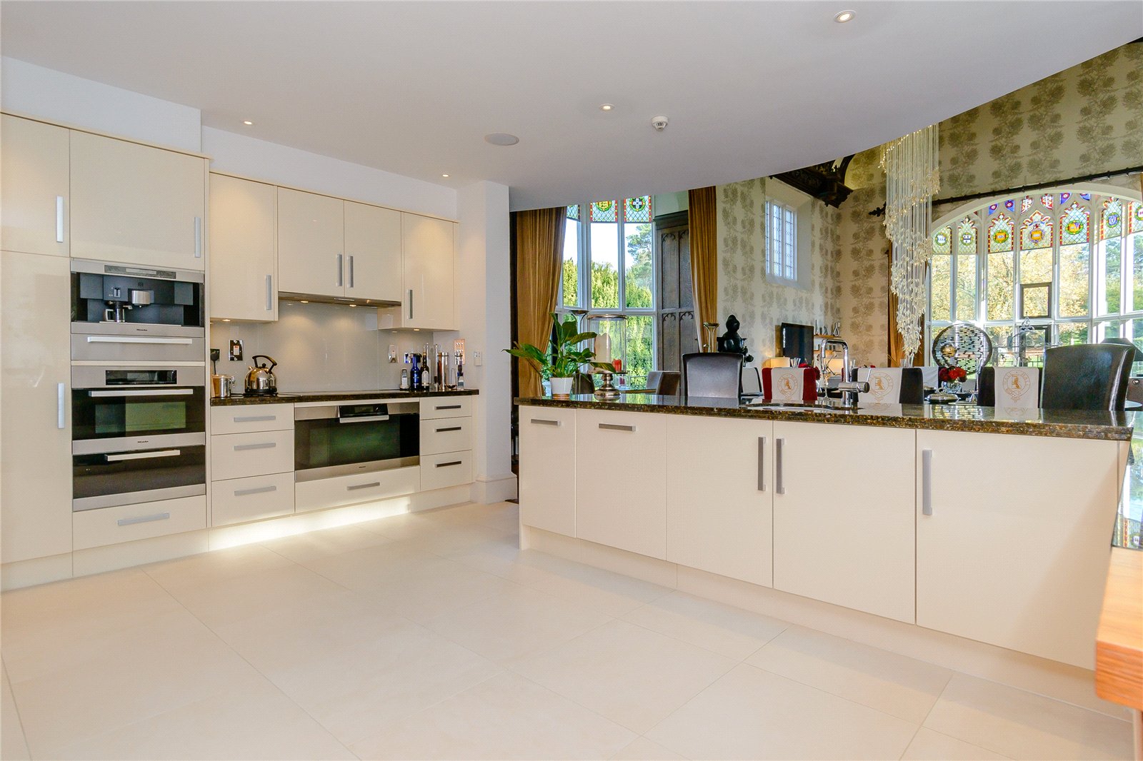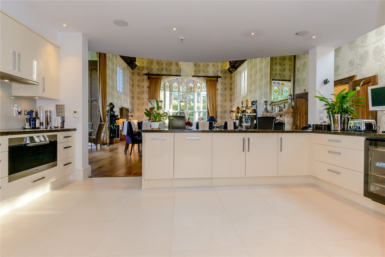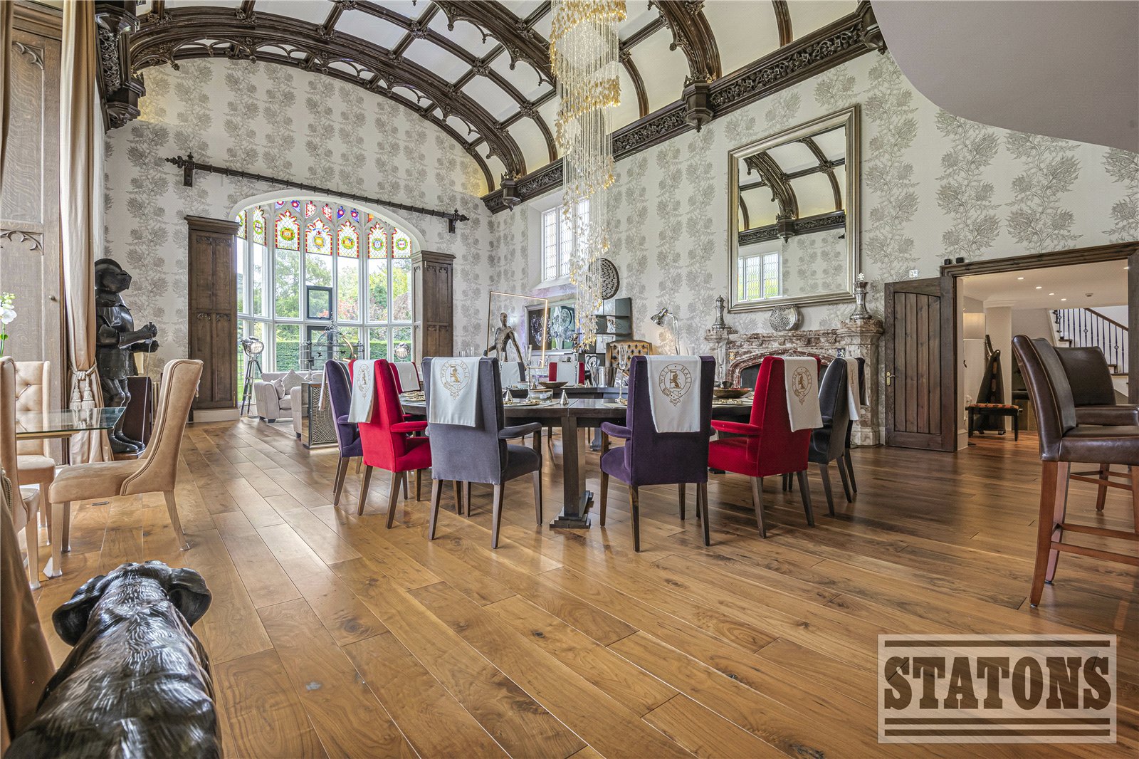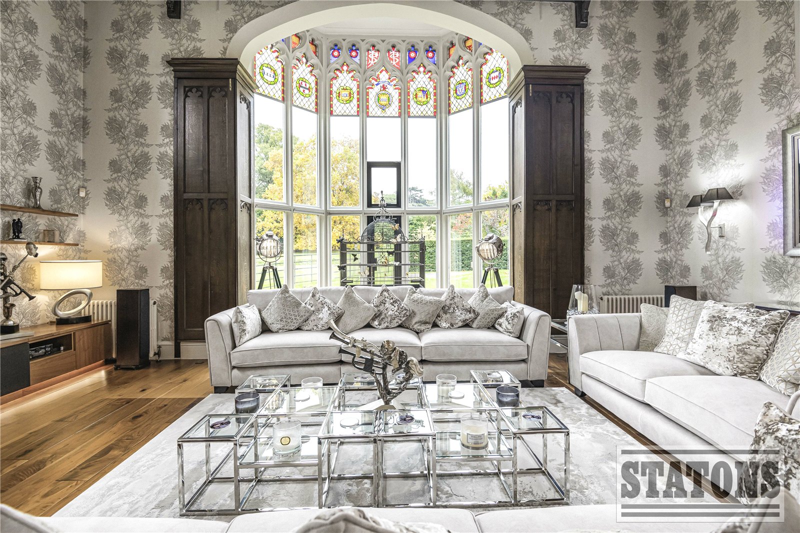 This remarkable home, extending to approximately 4,000 sq ft, is accessed via an imposing communal hall that evokes the grandeur of a bygone era. Inside, a majestic converted ballroom now serves as a stunning open-plan lifestyle space, seamlessly combining a reception area, dining room, bespoke kitchen, and mezzanine level beneath soaring ceilings and exquisite architectural detailing.