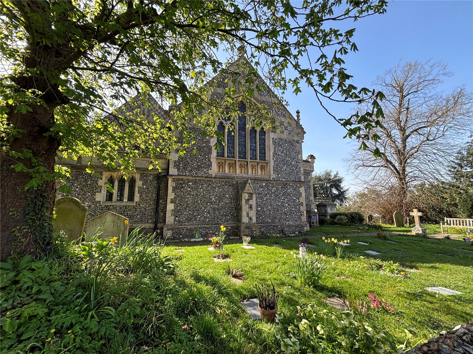 Set back from the road with off-street parking to the front, the house enjoys a particularly attractive outlook across to the church, lending a sense of space, privacy and enduring charm.