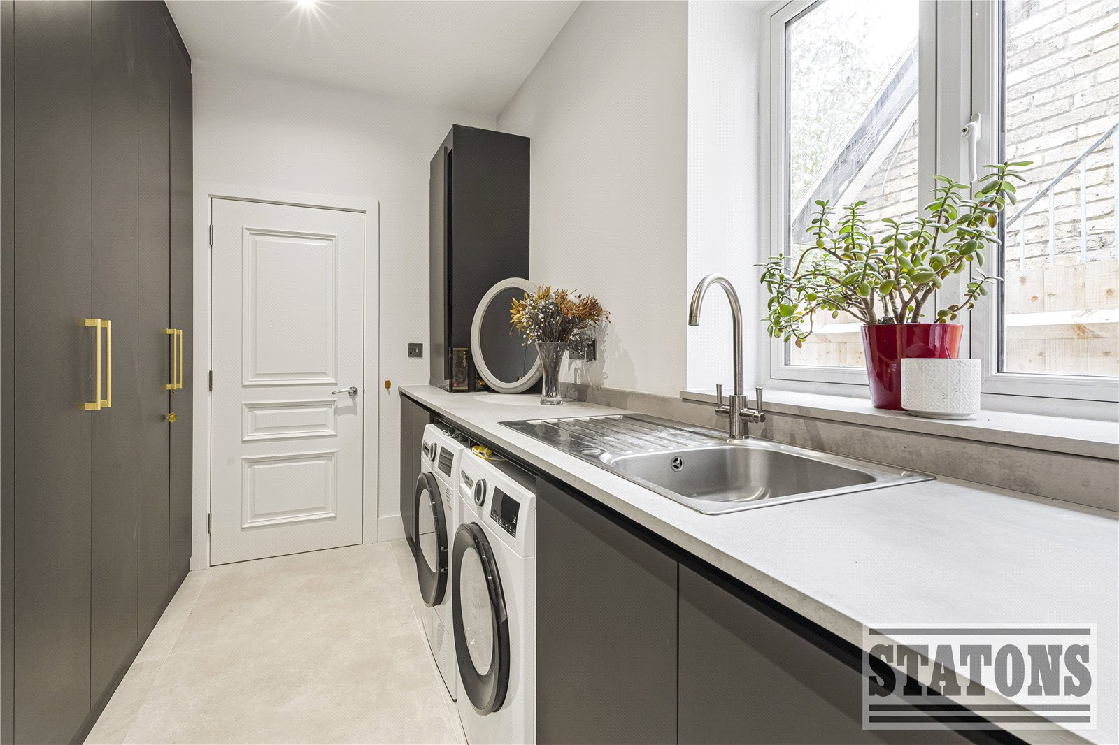 Upstairs, the first floor features four generous bedrooms, including a sumptuous principal suite with a dressing room and en-suite bathroom. Additional bedrooms are complemented by two stylish bathrooms and a separate utility area with a dedicated washing machine for convenience.