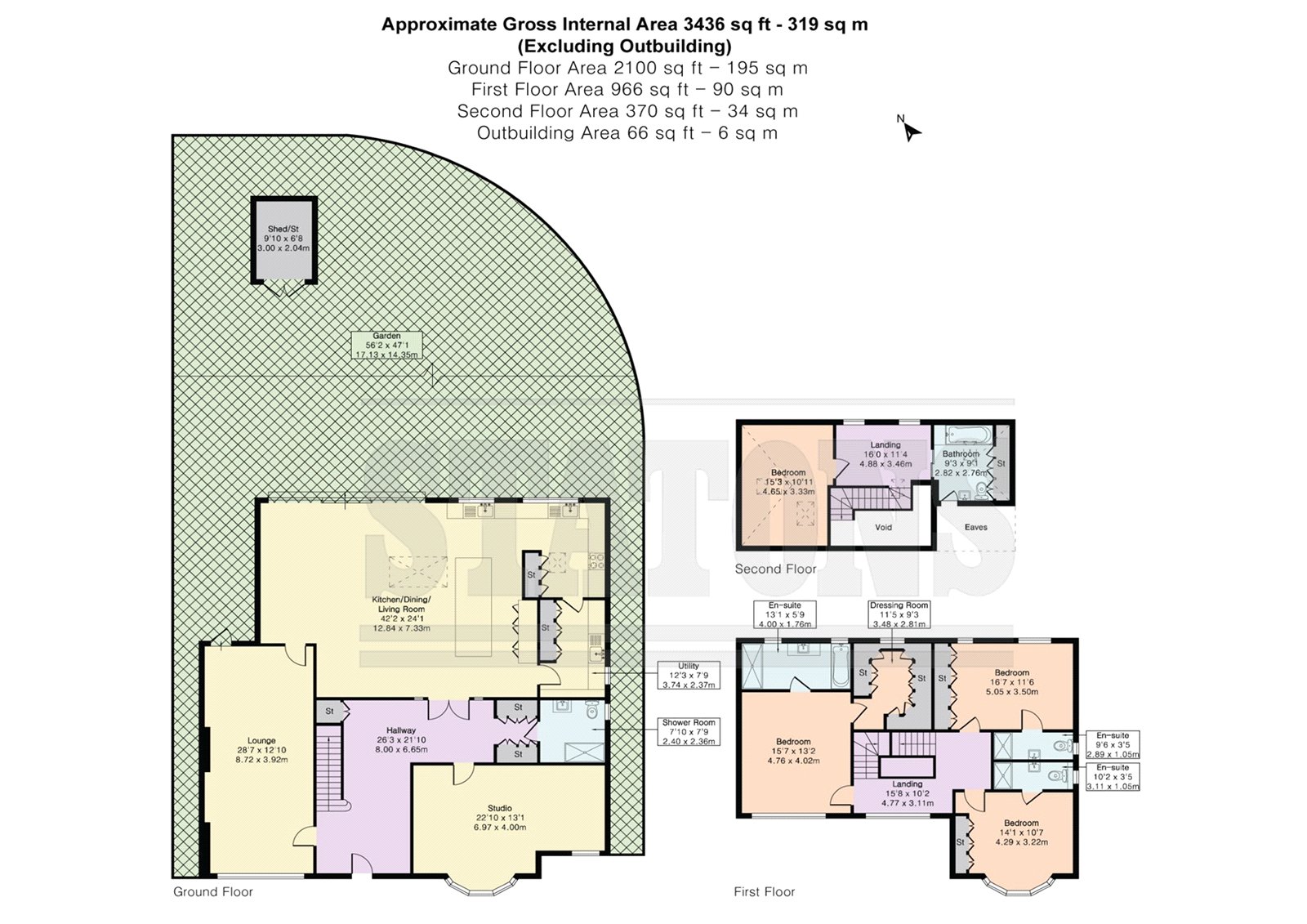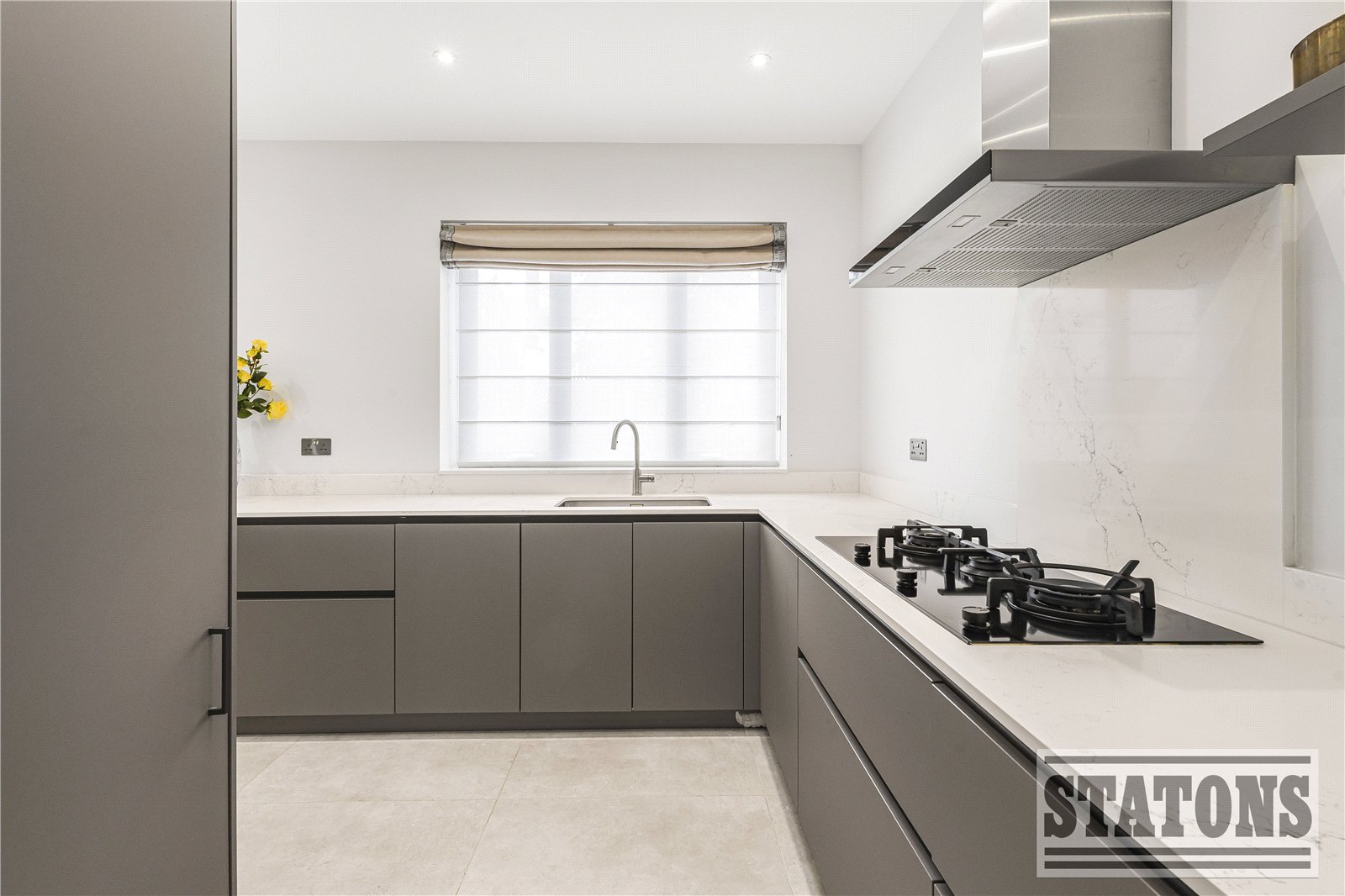 The heart of the home is the stunning open-plan kitchen/dining/living room — a bright and spacious hub featuring high-end appliances, sleek cabinetry, and seamless access to the garden. A second fully equipped kitchen offers added flexibility for entertaining, multi-generational living, or catering convenience. The ground floor also includes a large lounge, a versatile studio ideal for a home office or gym, a shower room, and excellent storage throughout.