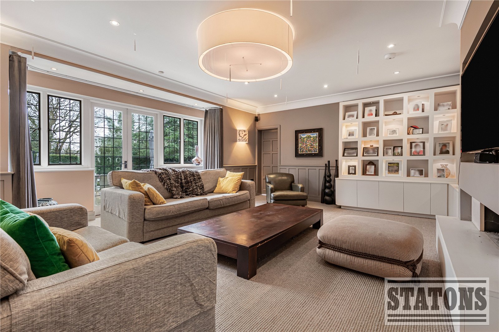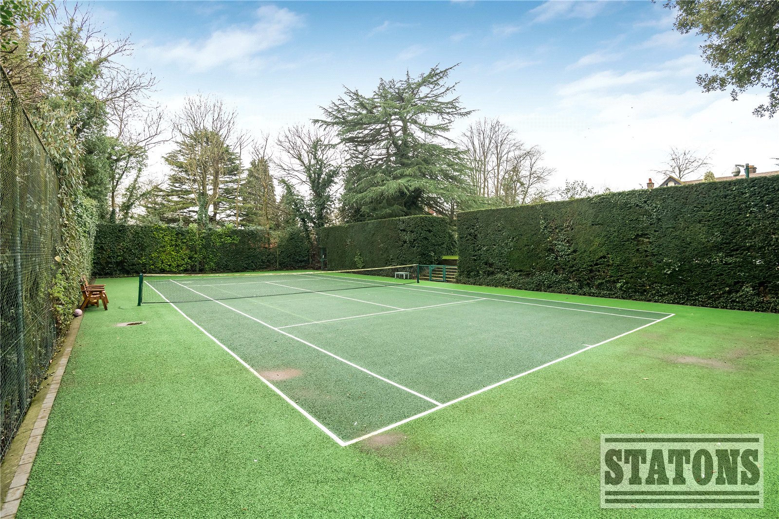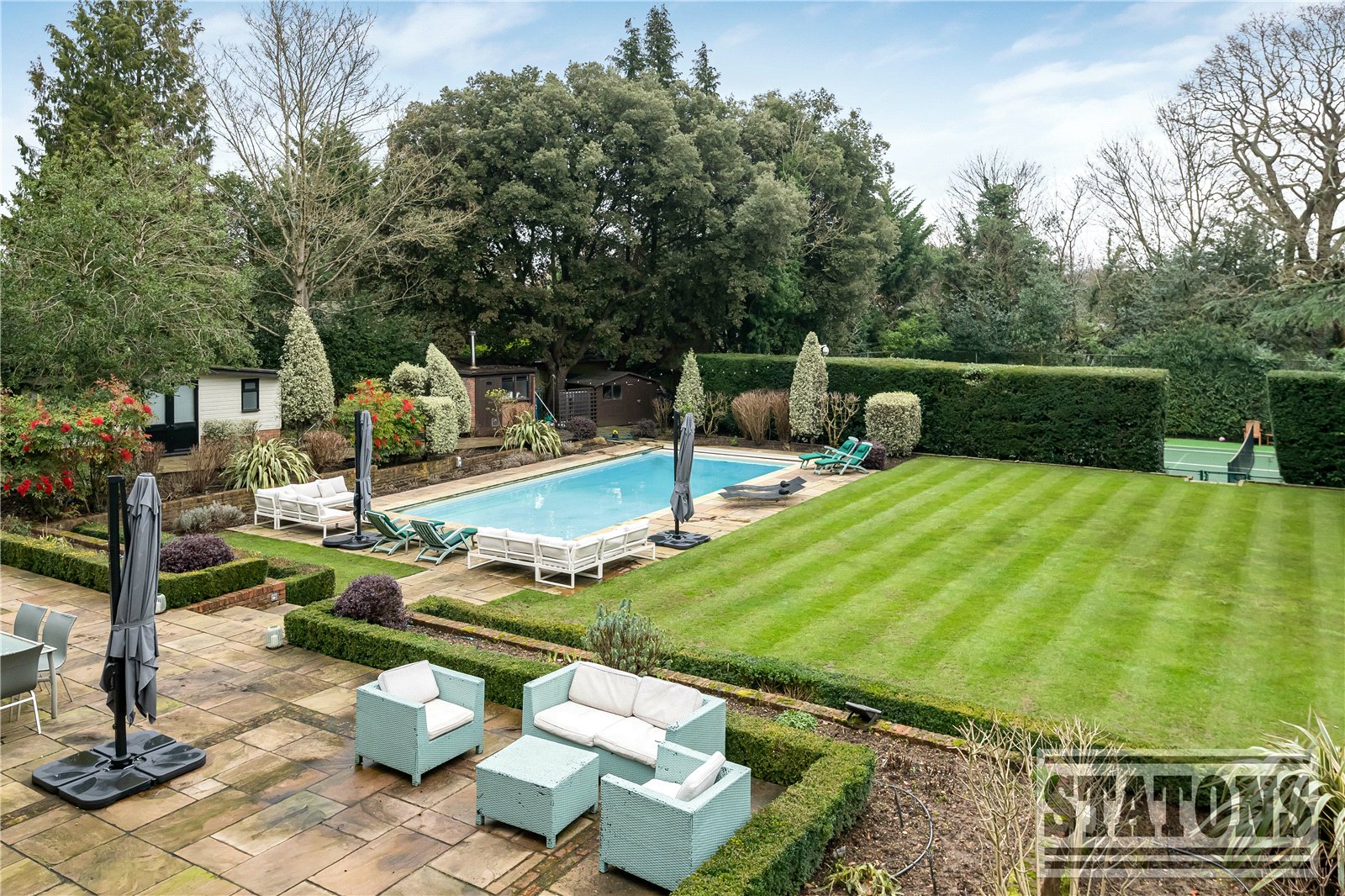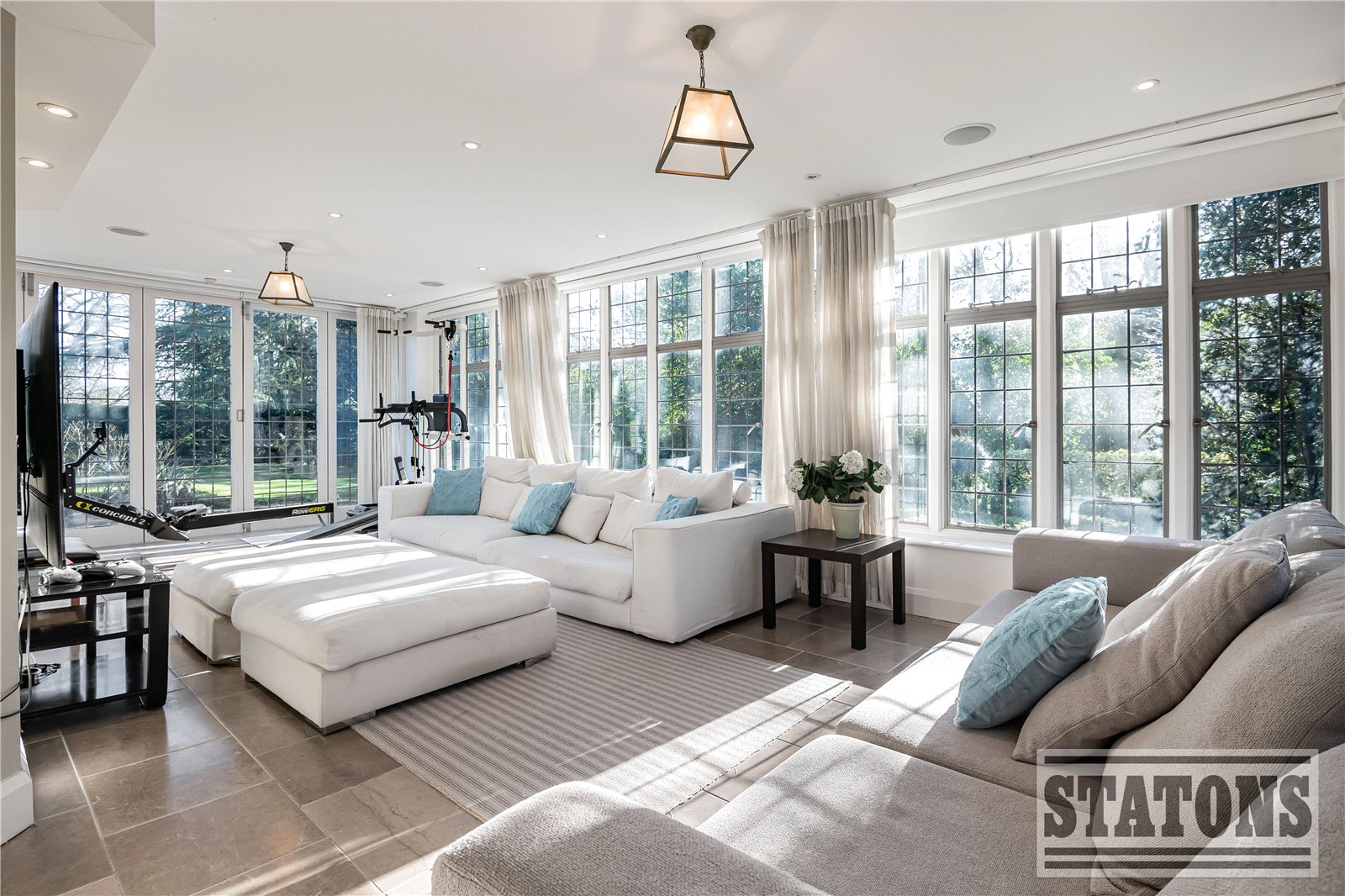 The grounds are a particular highlight, enjoying a truly indeclinable setting surrounded by mature woodland, with access to a swimming pool and full-size tennis courts, creating a lifestyle rarely found so close to London. The sense of privacy, tranquillity and space is exceptional, making the property perfectly suited to family life and entertaining alike.