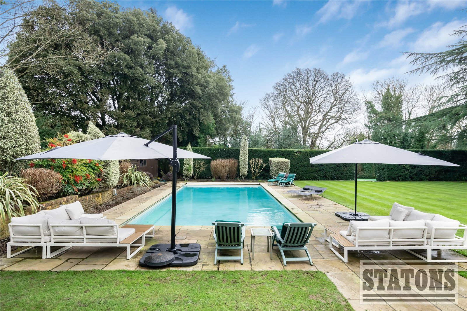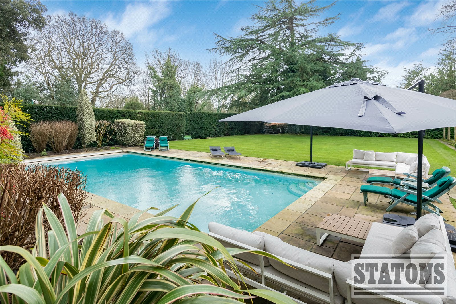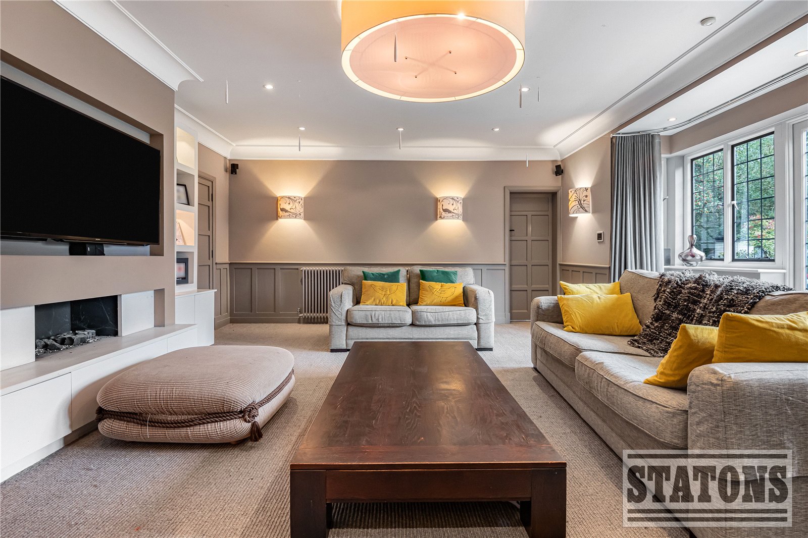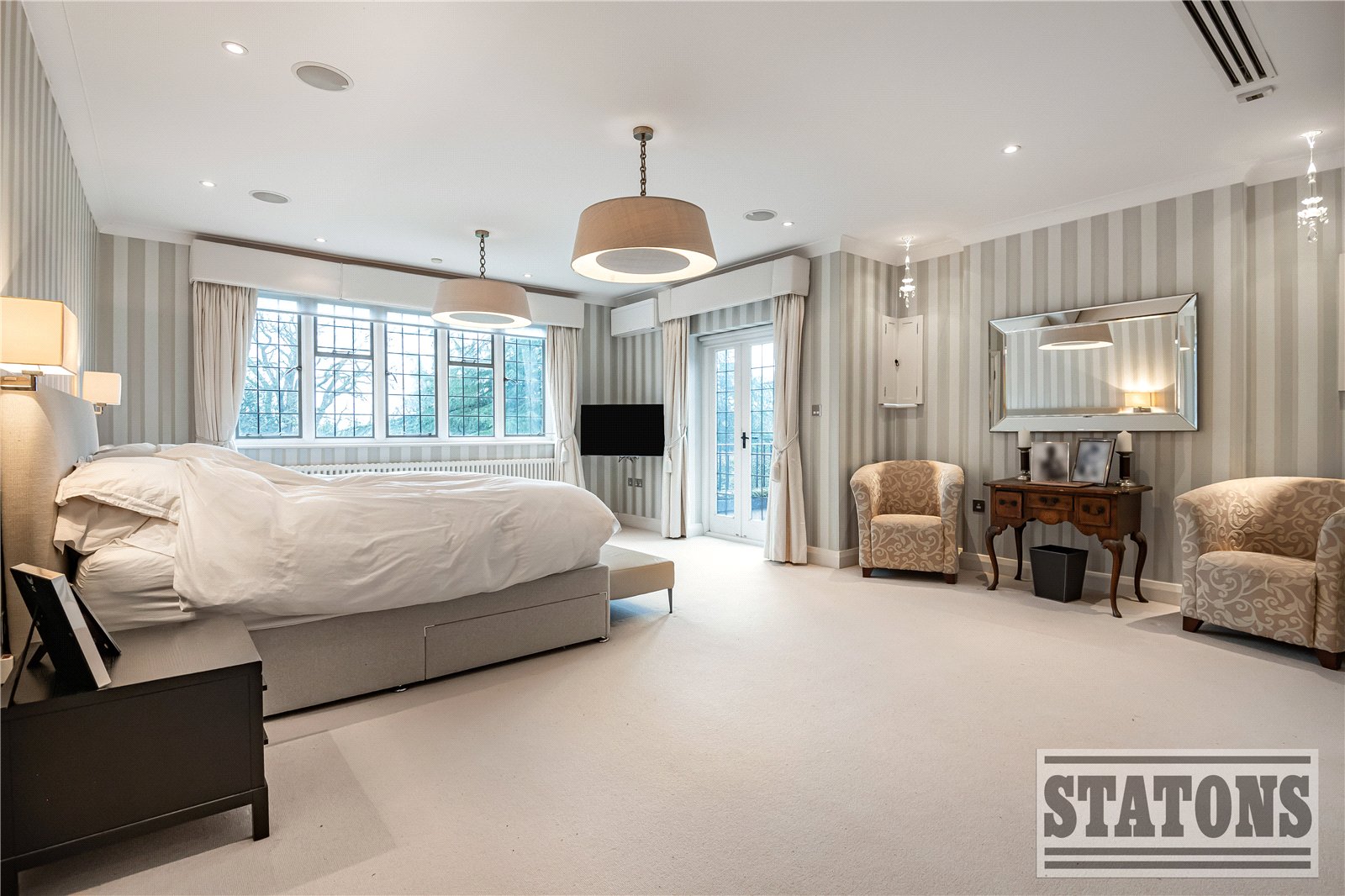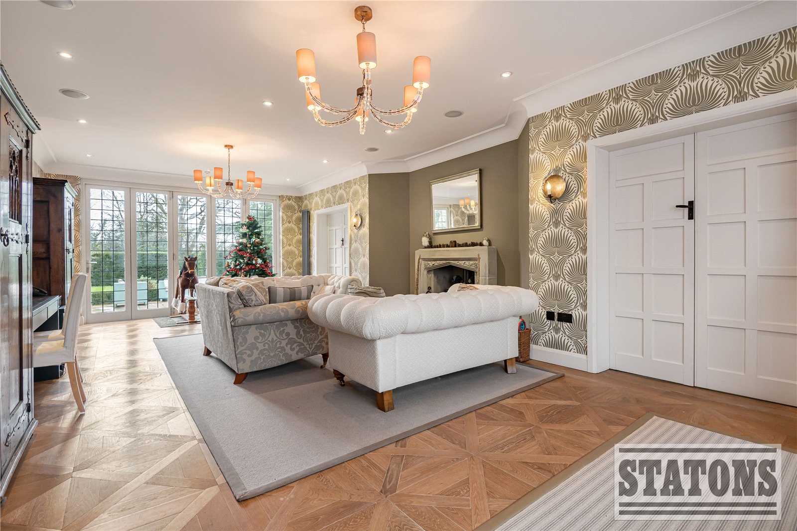 The grounds are a particular highlight, enjoying a truly indeclinable setting surrounded by mature woodland, with access to a swimming pool and full-size tennis courts, creating a lifestyle rarely found so close to London. The sense of privacy, tranquillity and space is exceptional, making the property perfectly suited to family life and entertaining alike.