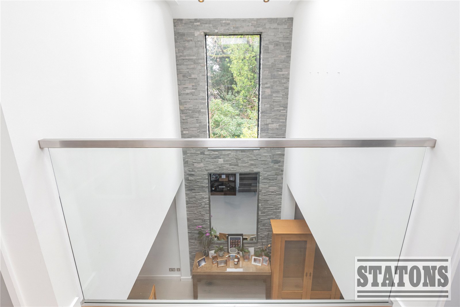 A striking staircase with glass balustrades takes you to the first floor galleried landing with a vaulted ceiling enhancing the homes architectural presence. The principal bedroom has an ensuite bathroom, walk in dressing room and a South facing all season’s balcony. Bedroom two is generously proportioned and has a vaulted ceiling and ensuite shower room. Two further bedrooms and a family bathroom with bath and shower complete this floor.