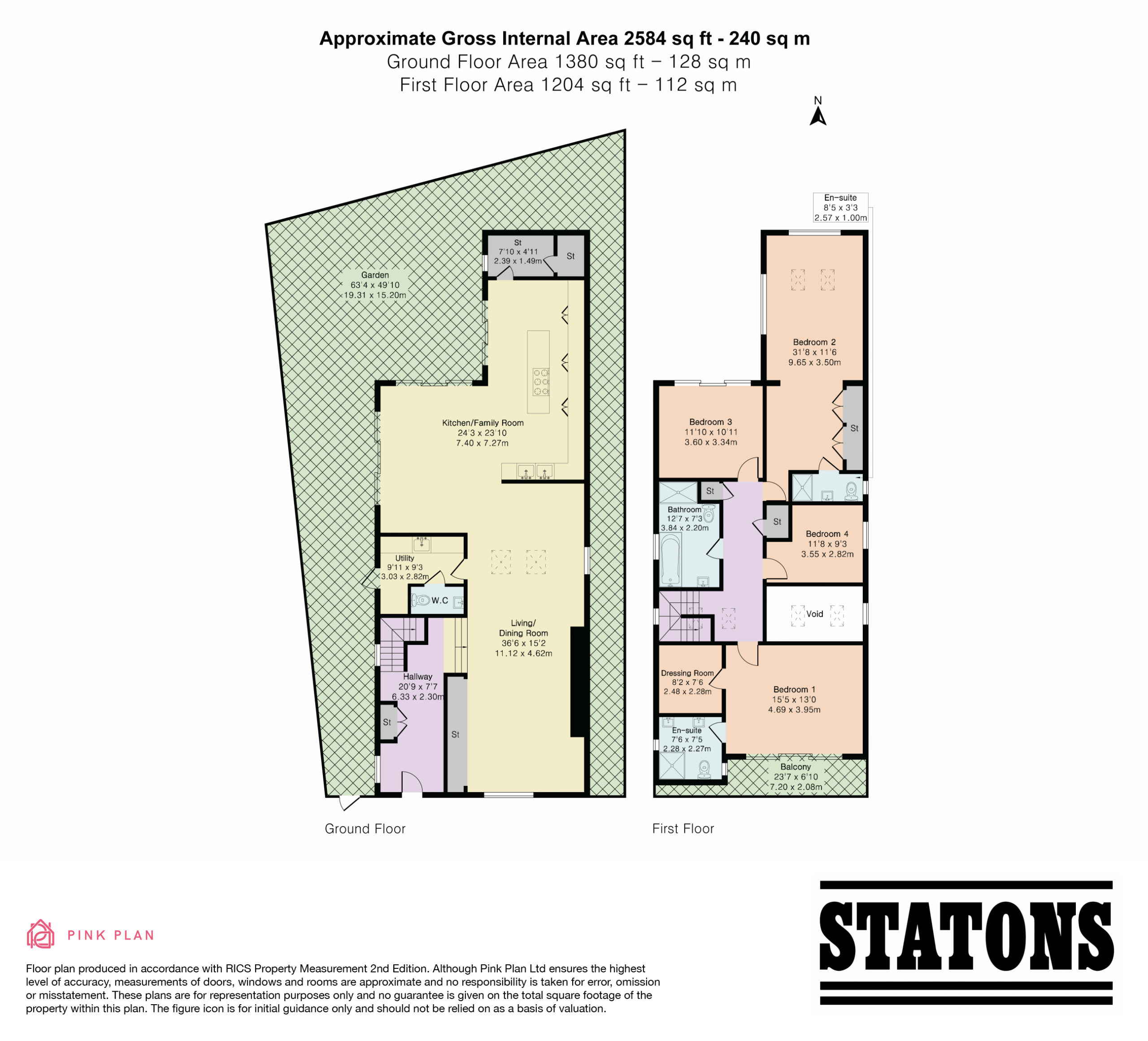 A striking staircase with glass balustrades takes you to the first floor galleried landing with a vaulted ceiling enhancing the homes architectural presence. The principal bedroom has an ensuite bathroom, walk in dressing room and a South facing all season’s balcony. Bedroom two is generously proportioned and has a vaulted ceiling and ensuite shower room. Two further bedrooms and a family bathroom with bath and shower complete this floor.